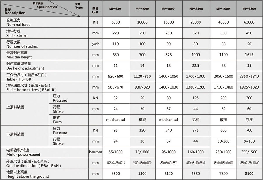 MP系列熱模鍛壓力機是引進德國先進技術生產(chǎn)的改進型系列產(chǎn)品, 擴大了壓力機使用范圍。