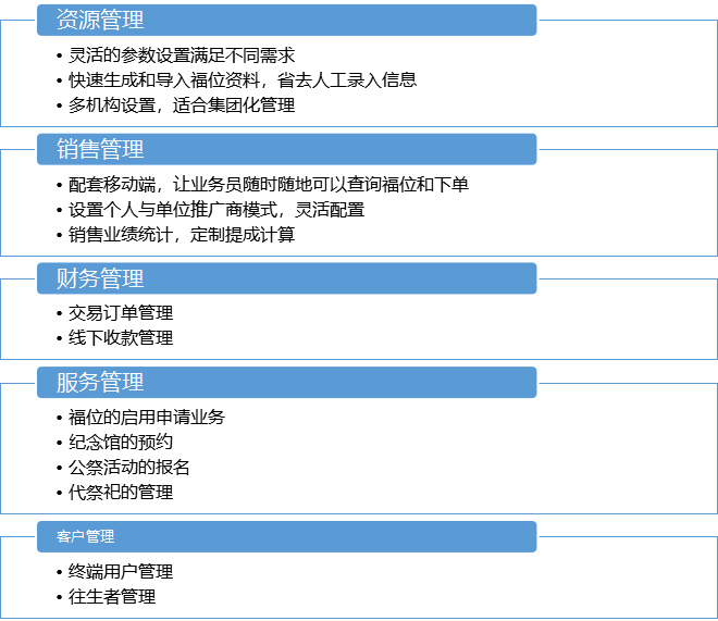 為了樹立科學(xué)管理的理念,提高行業(yè)管理效率,我們研發(fā)了一套標(biāo)準(zhǔn)的生命紀(jì)念館管理系統(tǒng),為行業(yè)的管理流程與服務(wù)提供了標(biāo)準(zhǔn)。